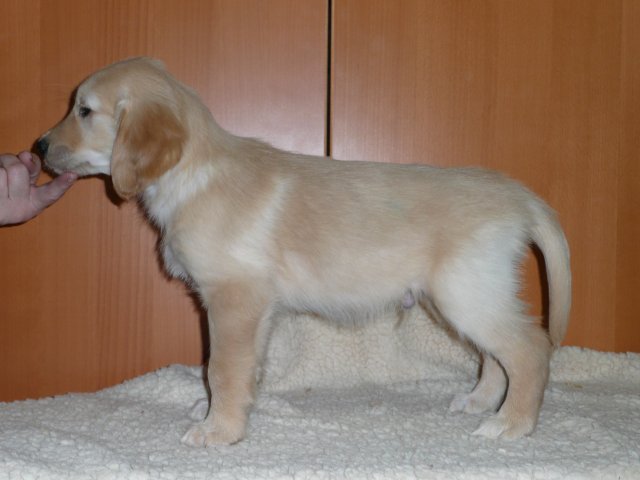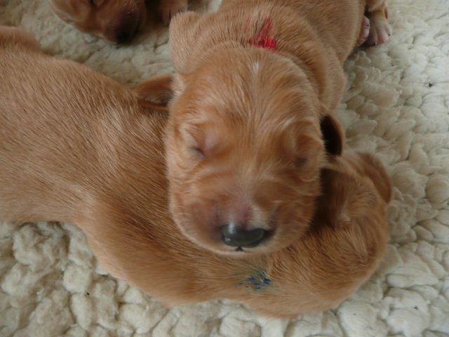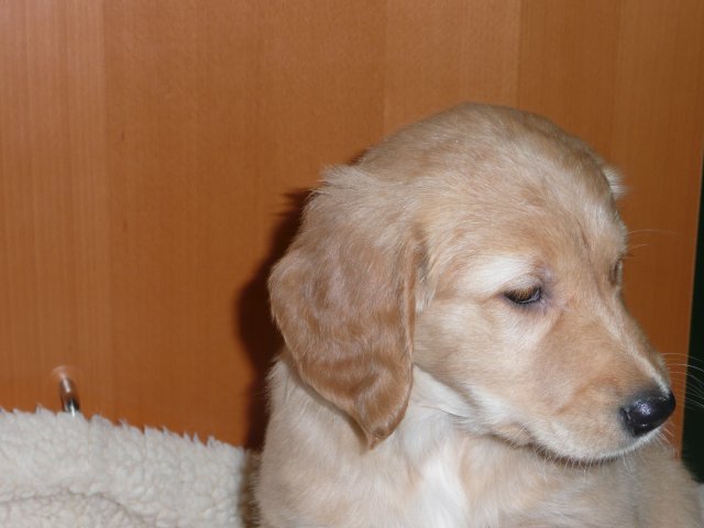 Zu Anfang der achten Woche haben wir jeden Welpen einzeln fotografiert. Es sind jetzt nicht so super tolle Bilder geworden, aber ich denke man kann sie erkennen. Das Licht im Zimmer war nicht optimal, der Blitz auch nicht, die Welpen wollten nicht so, wie wir wollten....sie wollten partout nicht stillhalten;-) Hier einmal unsere Schönen.