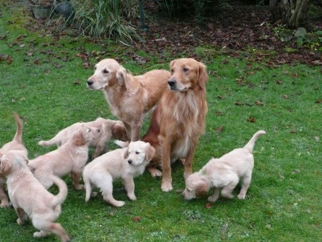 Welpen und ihre Familien.