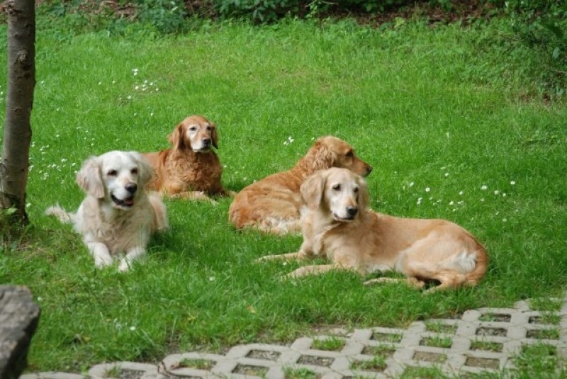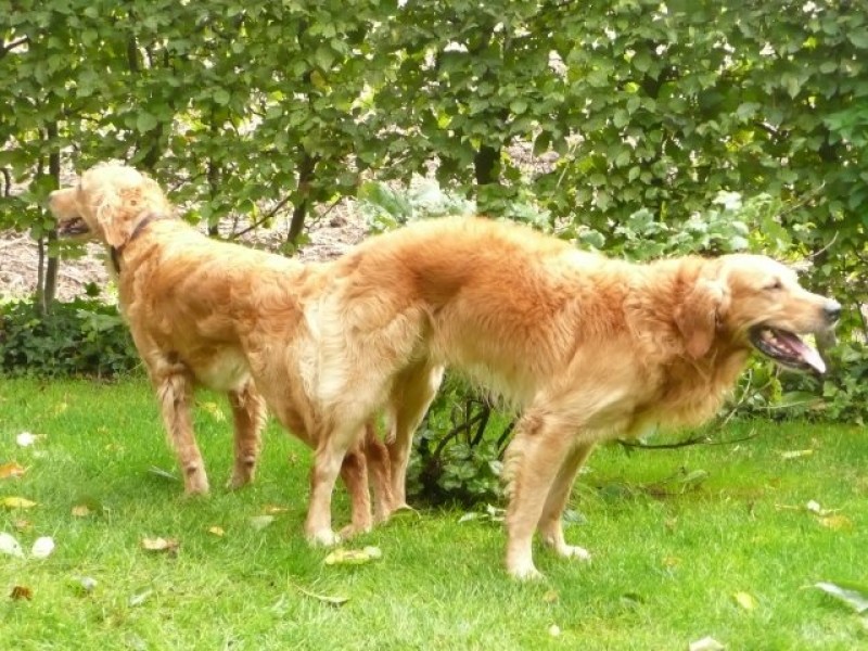 Beim diesjährigen Hundetag von unserem Hegering hatten wir Merle und Onia gemeldet. An den Start gingen 13 Hundeführer mit ihren Hunden ( 5 Deutsch-Drahthaar, 2 kleine Münsterländer, unsere 2 Golden, 1 Deutsch-Langhaar, 1 Magyar Vislar, 1 Chessie und 1 Terrier/Teckel Mix ). Gearbeitet wurde in drei Gruppen bei schönstem Wetter und mit kaltem Wild. Die Arbeitsbereiche am Wasser: Bringen aus offenem Wasser und Verlorensuche im deckungsreichem Gewässer. Feld: Freie Verlorensuche auf 1 Stück Federwild auf 40m Entfernung. Federwildschleppe 150m und Haarwildschleppe 300m. Wald: Es stand zur Wahl 300m Haarwildschleppe mit Kanin oder Fuchs...mit oder ohne Hindernis. Leinenführigkeit, angeleint oder frei ( frei = 1 Pluspunkt ), Ablegen mit Standtreiben, angeleint oder frei ( frei = 1 Pluspunkt ). Ich hatte Merle für Fuchs über Hindernis und Onia für Kanin über Hindernis gemeldet. Bei der Leinenführigkeit und beim Ablegen und Standtreiben waren Beide unangeleint. Vier Hunde kamen an die höchste Punktzahl....2 Drahthaar, der Chessie und unsere Merle. Suchensieger wurde der jüngste Hund und das war ein Drahthaar. Onia hatte einen Pluspunkt weniger, da sie statt Fuchs, Kanin über Hindernis hatte. Bei Beiden wurden alle Arbeiten mit der höchsten Benotung ( 4 ) bewertet. Der Hundtag endete für alle erfolgreich und in einem gemütlichen Beisammensein mit leckerem Fleisch vom Grill, Salaten und kalten Getränken. Es gibt auch sehr schöne Fotos von Hund und Mensch, aber die bekommen wir erst noch und werden dann HIER zu sehen sein.