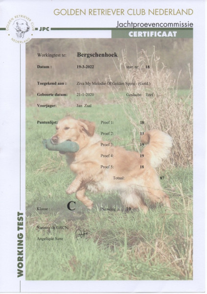 Caroline startet mit Thiara in den Niederlanden bei der Champions Trophy. Nur 2 Hunde haben alles apportiert. Thiara kommt mit 1 Punkt Unterschied auf den 2. Platz. O-Ton Caroline...Thiara hat gut gearbeitet und sie wäre sehr stolz auf sie.