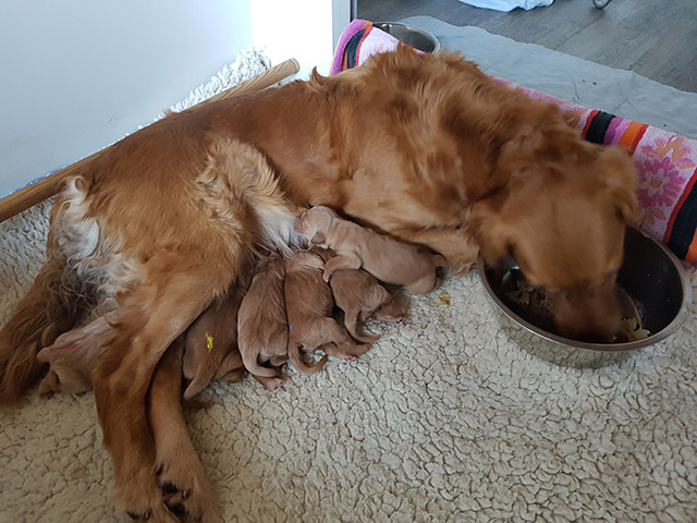 Wir sind sehr zufrieden und hoffen, es geht so weiter. Sunny ist auf dem Video etwas außer Atem, mein Mann hatte ihr im Garten 2-3mal ein Dummy geworfen um sie abzulenken, in der Zeit konnte ich die Wurfkiste neu herrichten. Aber dann hielt sie nichts mehr und sie drängte zu ihren Kindern...wie man an ihrem Verhalten sehr schön sehen kann.