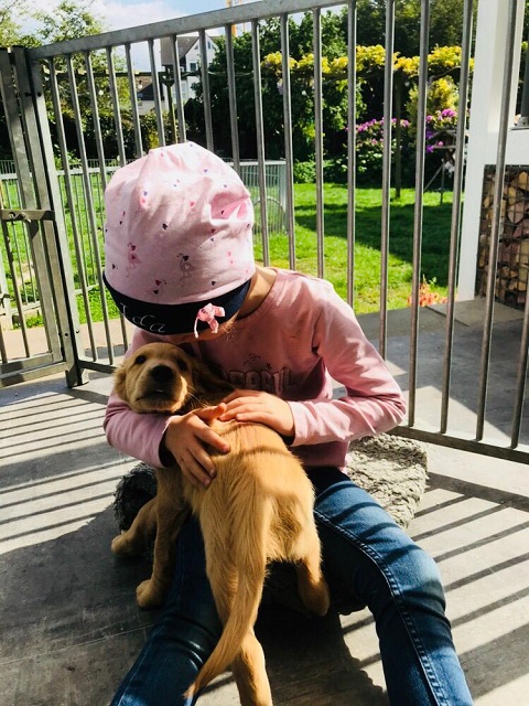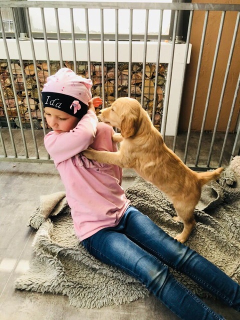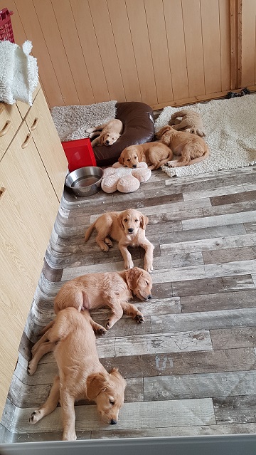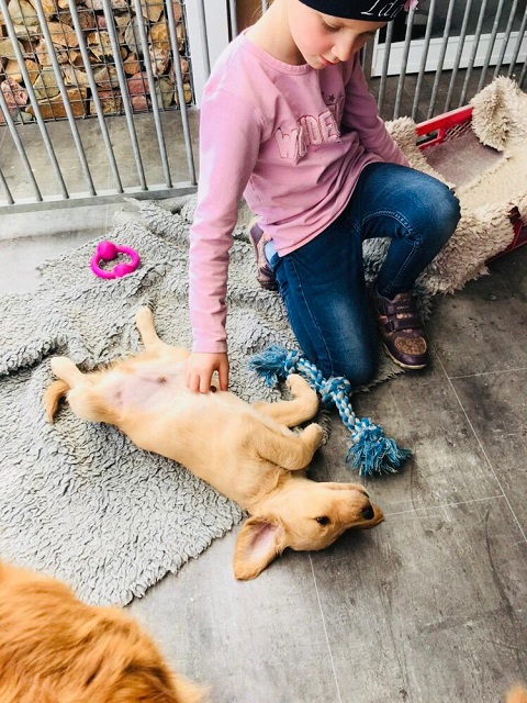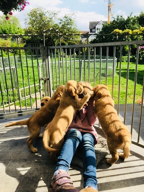 Die ersten Tage verbringen die Welpen in einem seperaten, neben dem Schlafzimmer liegenden Raum, ziehen dann in ein neben dem Wohnzimmer gelegenen Raum mit direktem Zugang zum Gartenauslauf. Es bestehen viele Präge-und Sozialisierungsmöglichkeiten so dass die Welpen bestmöglich gefördert werden.