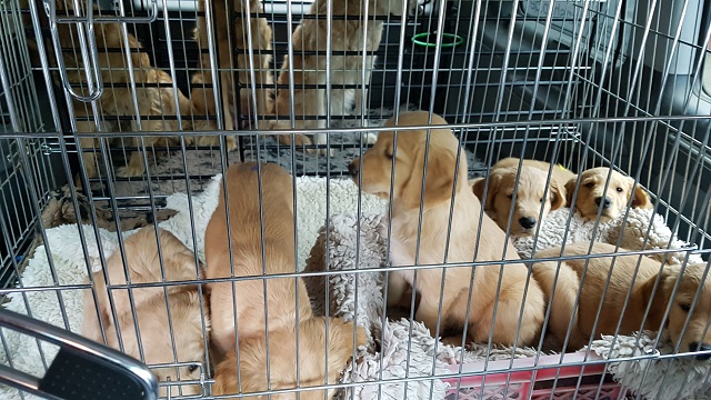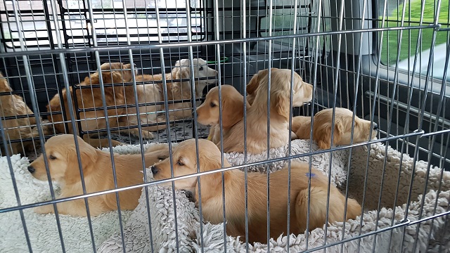 Vorsichtshalber nahm ich noch von allen Welpen eine kleine Kotprobe mit, diese sollten sie sich in der Praxis einmal anschauen, auf Parasiten....zu meiner Beruhigung. Um 8:00 Uhr packten wir unser Auto und um 8:15 Uhr machten wir uns auf den Weg...wir hatten unseren Termin um 9:00 Uhr...man weiss ja nicht wie voll die Autobahn ist. Im Anfang war die Bande noch aufgeregt und sie jammerten auch etwas. Mein Mann meinte "ab Holzwickede sind sie ruhig"...es dauerte dann doch bis zur Auffahrt auf die A1 in Unna, da lagen sie dann ruhig und ab und zu schaute mal ein Köpfchen hoch um es sich auch wieder bequem zu machen. Ich habe ein kleines Video, da waren wir gerade in einer Baustelle und es holperte da doch ganz schön...alles kein Problem.