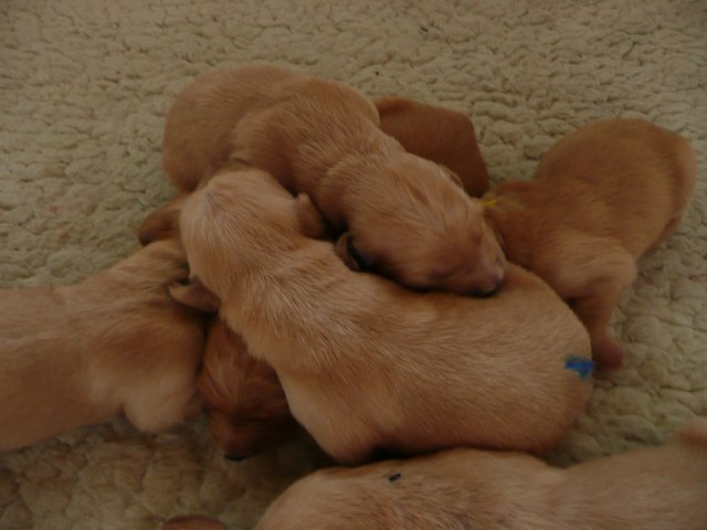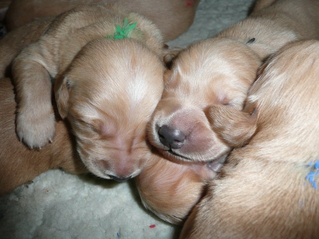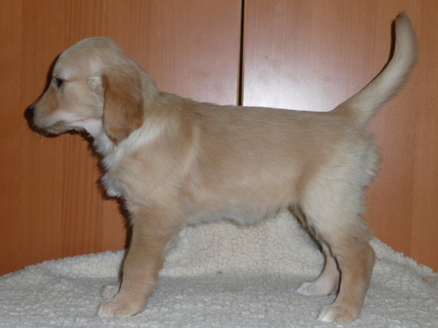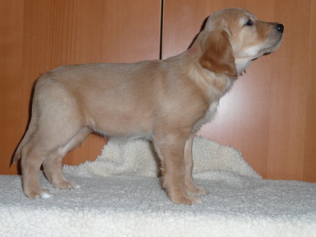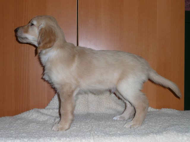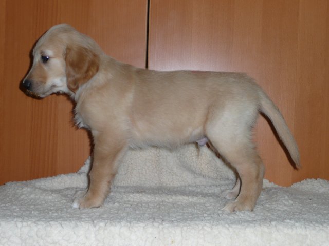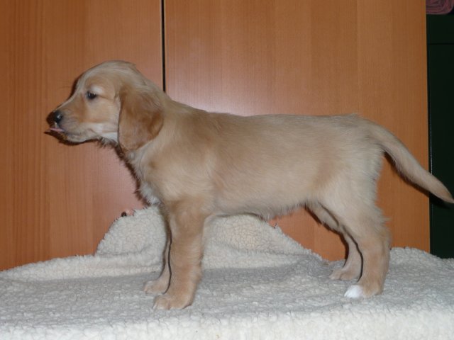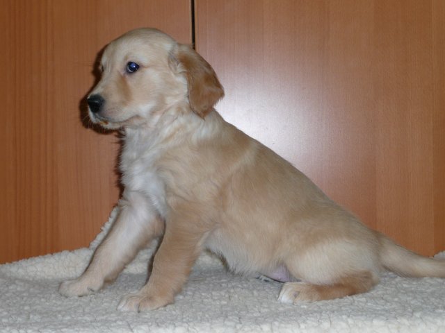 Zu Anfang der achten Woche haben wir jeden Welpen einzeln fotografiert. Es sind jetzt nicht so super tolle Bilder geworden, aber ich denke man kann sie erkennen. Das Licht im Zimmer war nicht optimal, der Blitz auch nicht, die Welpen wollten nicht so, wie wir wollten....sie wollten partout nicht stillhalten;-) Hier einmal unsere Schönen.