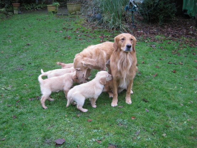 Welpen und ihre Familien.