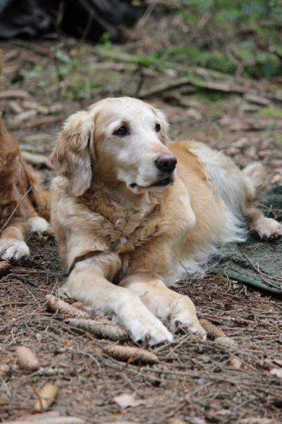 Nun sind wir im Endspurt und wir sind gespannt ob Merle bis Pfingsten aushält. Noch ist alles ruhig auch noch keine nennenswerte Buddelei im Garten. Gestern hat mich Madam geschockt. Auf unserer Terrasse wurden die Steine neu verlegt und verfugt, sie durfte bis heute nicht betreten werden und so mußte ich die Hunde durch das Gartentor in den Garten lassen und habe sie in den hinteren Teil abgesperrt. Normalerweise bleibe ich dabei aber wie es so ist, ging das Telefon und ich in die Wohnung. Nach 5 Minuten kam ich heraus und als ich unser Gartentor öffnete stand Merle dahinter....oh Schreck, ist sie mit dem dicken Bauch über den Zaun gesprungen, so ein verrücktes Luder. Natürlich war sie auch auf der Terrasse und hat in einer breiteren Fuge glatt ihre Krallen hinterlassen, als Andenken an den S-Wurf ;-) Wie es scheint ist alles gut gegangen, sie zeigt keinerlei Auffälligkeiten. Ihr Bewegungsverhalten ist insgsammt ruhiger geworden. Im Gelände habe ich sie nur noch an der langen Leine, zur Kontrolle, sie rast auch nicht mehr so los. Die Kleinen strampeln nach wie vor und der Bauch ist stramm und prall. Im Moment habe ich kein aktuelles Foto aber ich versuche es gleich einmal im Garten.