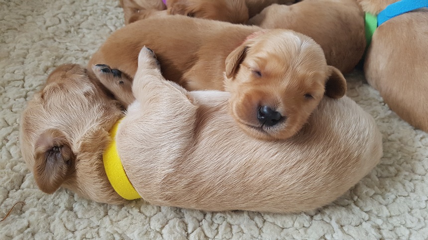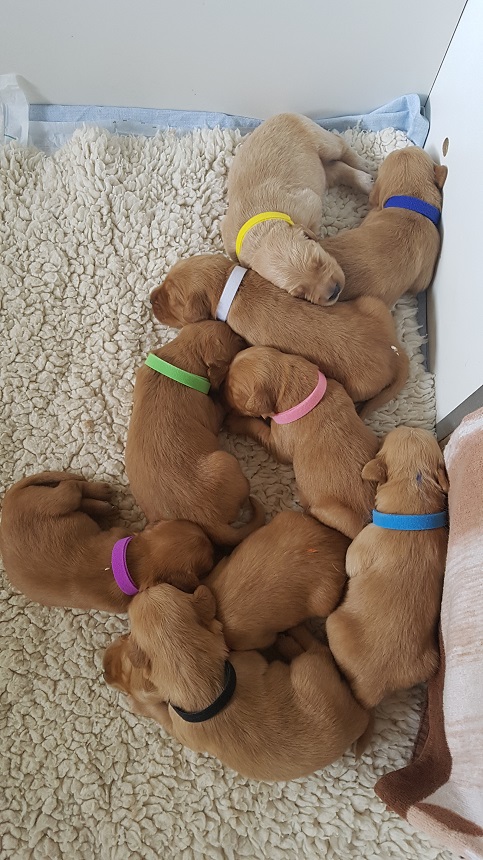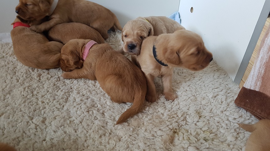 Die zweite Woche verlief ruhig...Mutter und Kinder sind gesund und noch sehr pflegeleicht. Sunny kümmert sich nach wie vor sehr gut und hält ihre Kleinen sehr sauber. Seit Mitte der Woche schläft sie schon wieder öfters neben meinem Bett aber so bald die Kleinen einen Mucks von sich geben schaut sie nach dem Rechten. Die Abstandshalter in der Wurfkiste musste ich entfernen, die Kleinen machten schon Klimmzüge daran und ich hatte Angst, dass sie sich darin einklemmen. Mittlerweile sind sie so groß dass sie sich lautstark bemerkbar machen, sollte Sunny sich zu eng an die Wand legen.