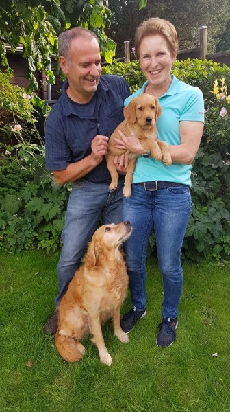 Arim ist zu Martina und Thomas nach Lauchringen gezogen. In der Familie leben noch 2 Goldensenioren, sein Onkel Joker mit 16 Jahren und Finley 11 Jahre. Martina möchte mit Arim wieder in die Dummyarbeit einsteigen.